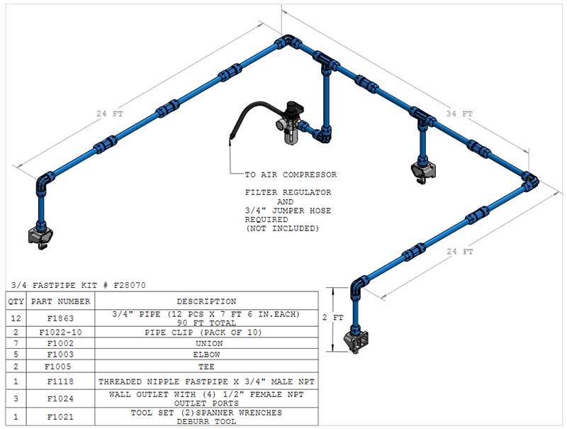 If you require a large system, it’s best to purchase individual parts rather than starting with a master kit and adding on. If you do not have a compressor jumper hose or filter regulator, for example, you can purchase those accessories right from our site. They are great additions to finish your system.