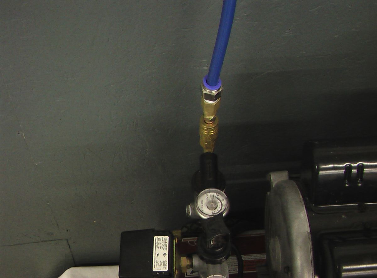 - The air from the the air compressor must enter the port labeled IN on the filter/regulator11